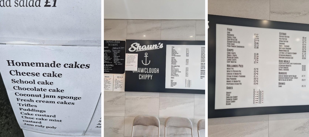 Finding a decent chippy in this area was impossible until I came across this chippy. I'd never heard of Irish curry before and let me tell you it's beautiful. I was allowed to try the different Currys on offer so went with the one I liked. Ended up having fish chips and Irish curry. Have to say it was absolutely gorgeous. Staff were very welcoming and I will be returning every time Im in the area. Highly recommend